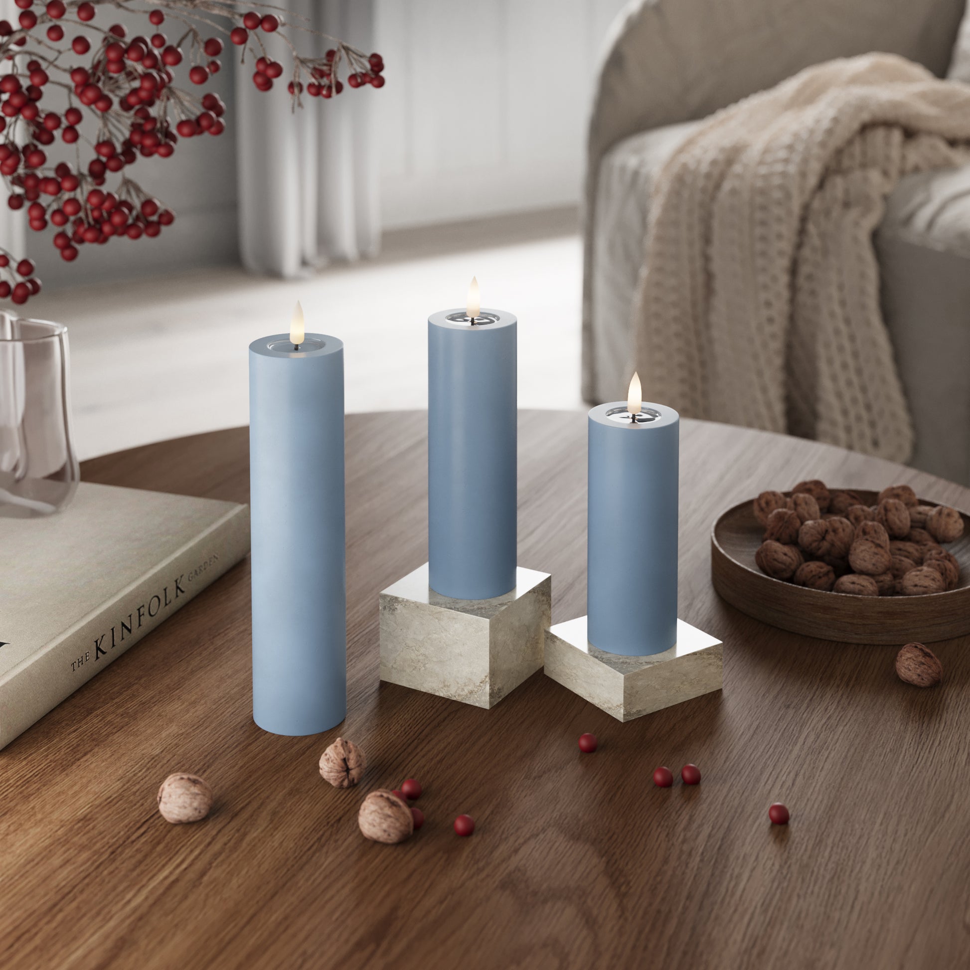 Et bloklys er en enkel måde at skabe hygge på – særligt flot, når flere lys samles.