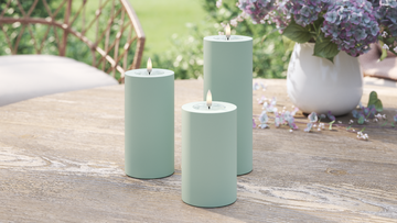 LED-Blockkerzen für den Außenbereich Ø 7,5 x 10 cm Salbeigrün