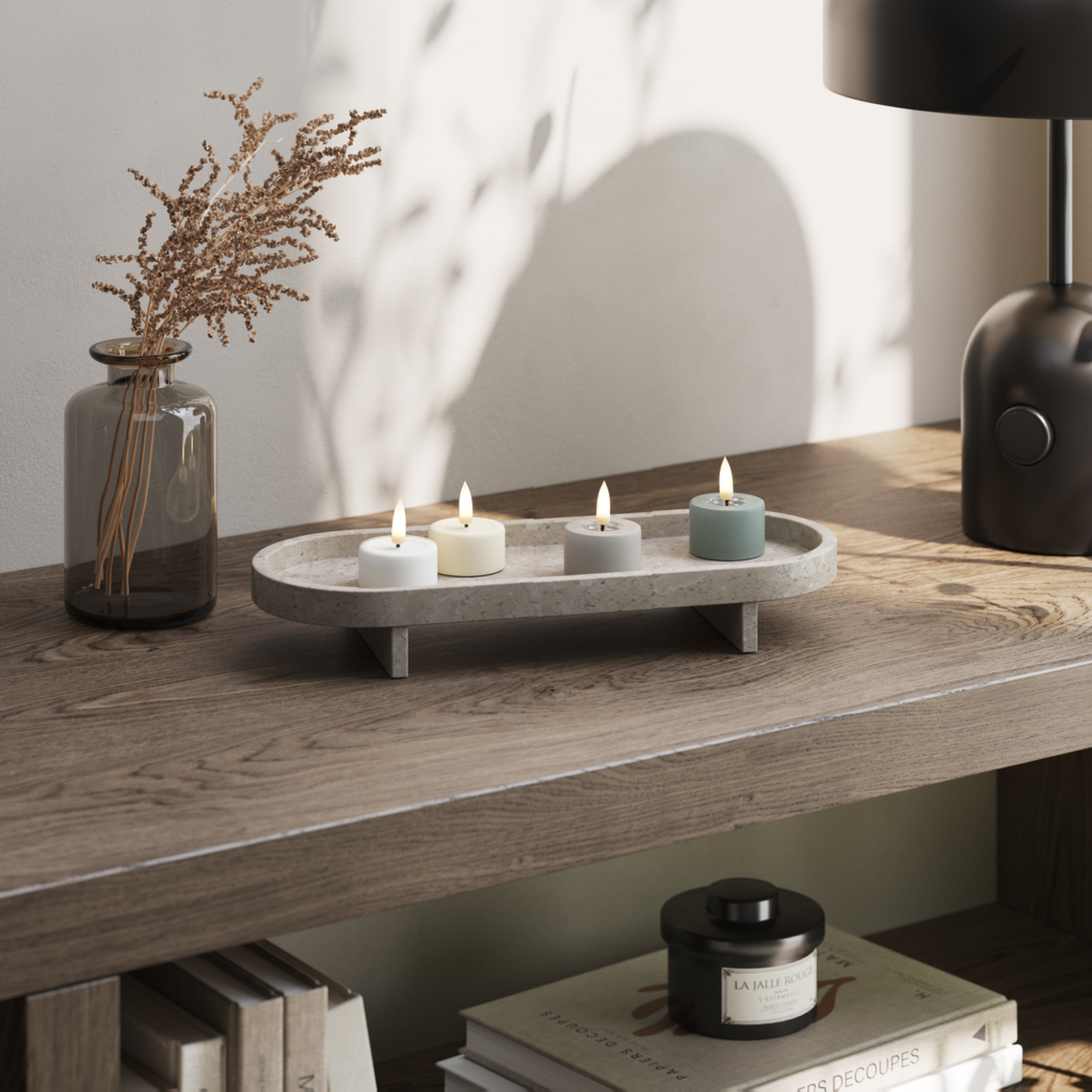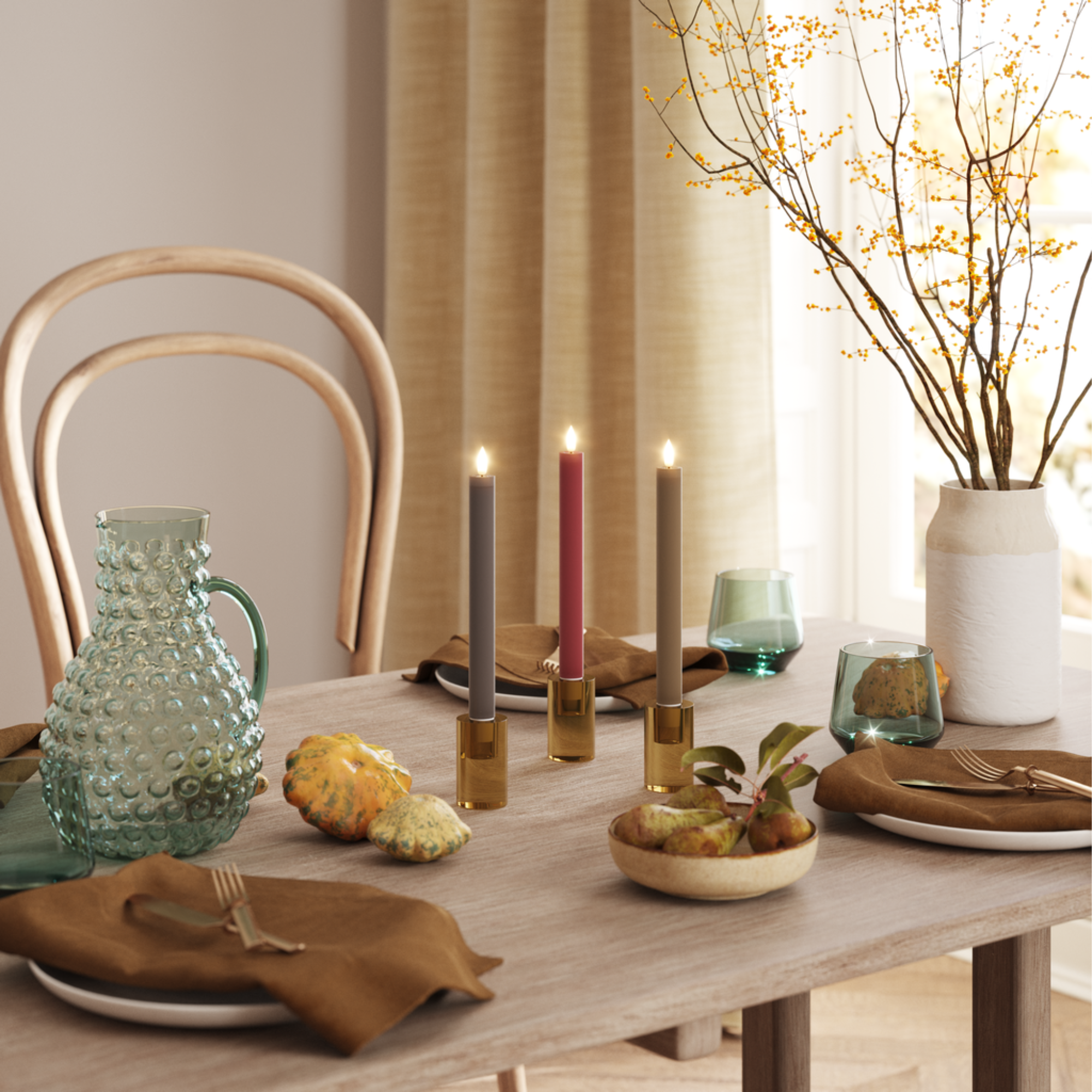 Kynttilämme on huolellisesti suunniteltu hartsipäällyksellä, joka luo autenttisen vaikutelman kuin kynttilät olisivat palaneet jonkin aikaa. Tämä erikoisominaisuus tekee kynttilistämme uskomattoman realistisia, varsinkin kun liekki heittää lämpimän hehkunsa hartsipinnalle.