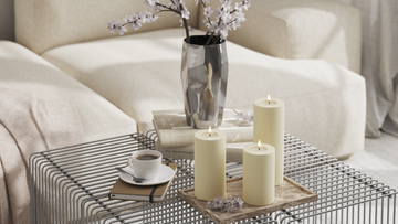 Bloklys er perfekte til dekorationer. Saml dem på et fad, i en lanterne eller i vindueskarmen for en rolig stemning.