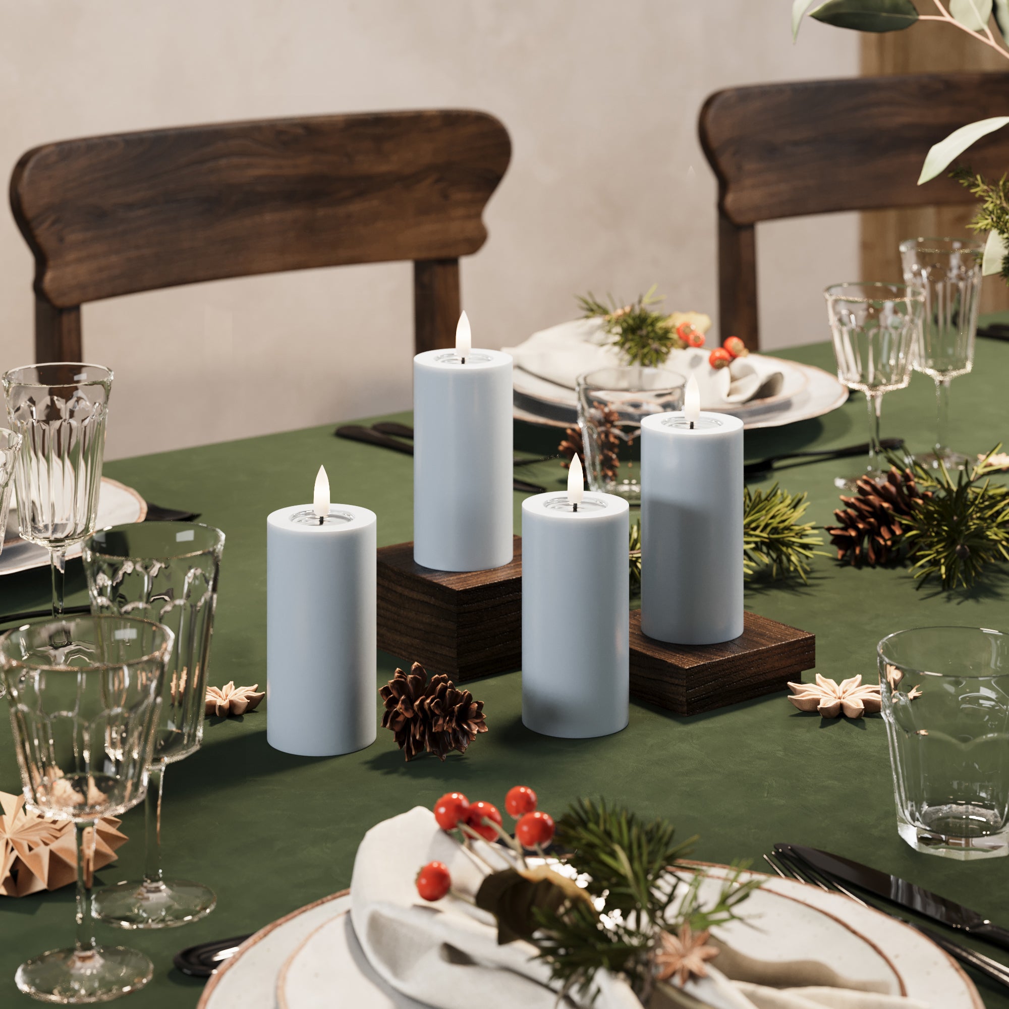 LED Bougie pilier Ø 5 x 10 cm Bleu poussiéreux - 4 PCS