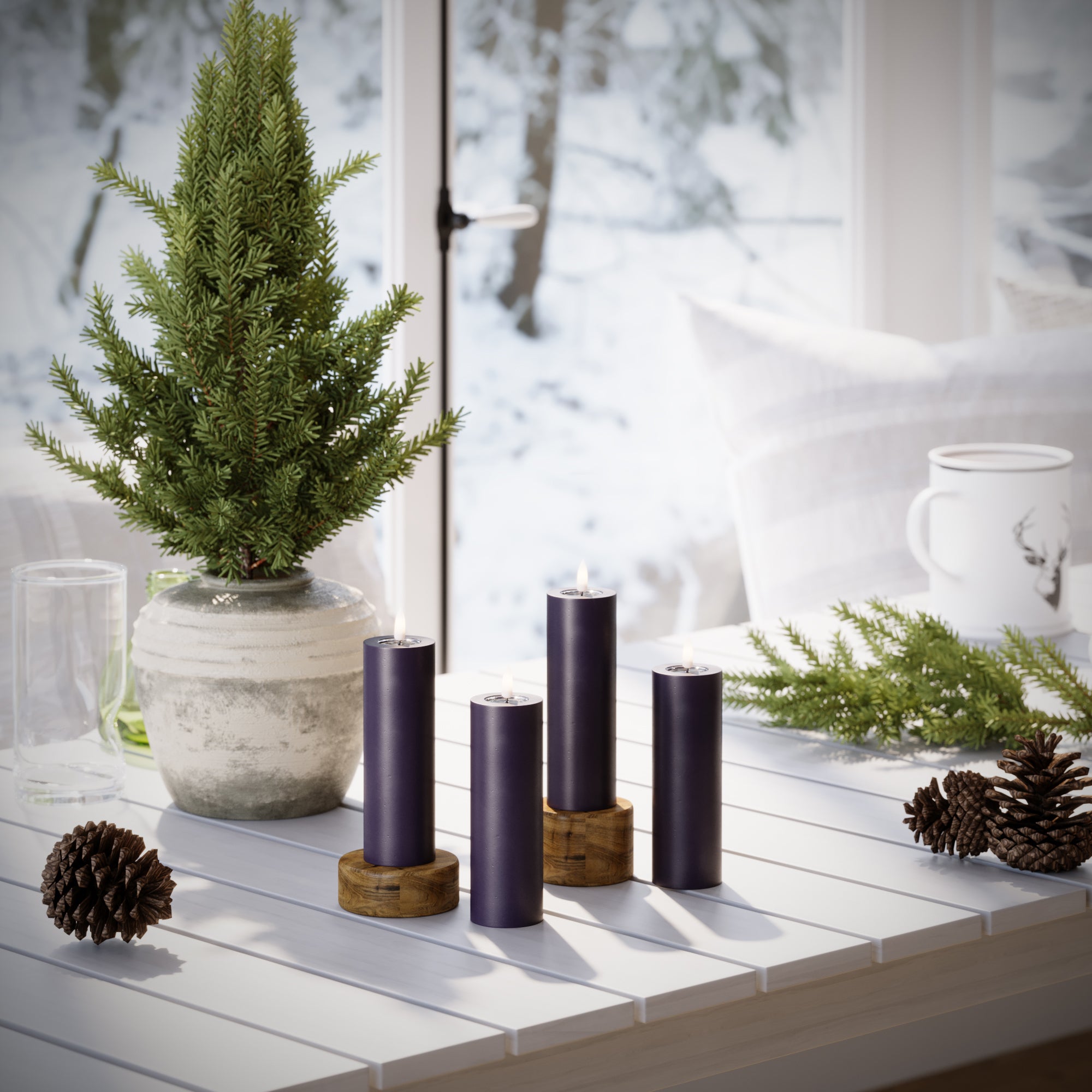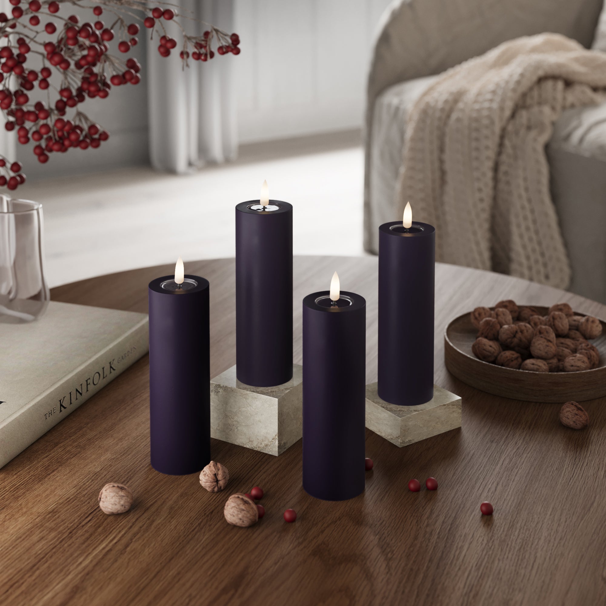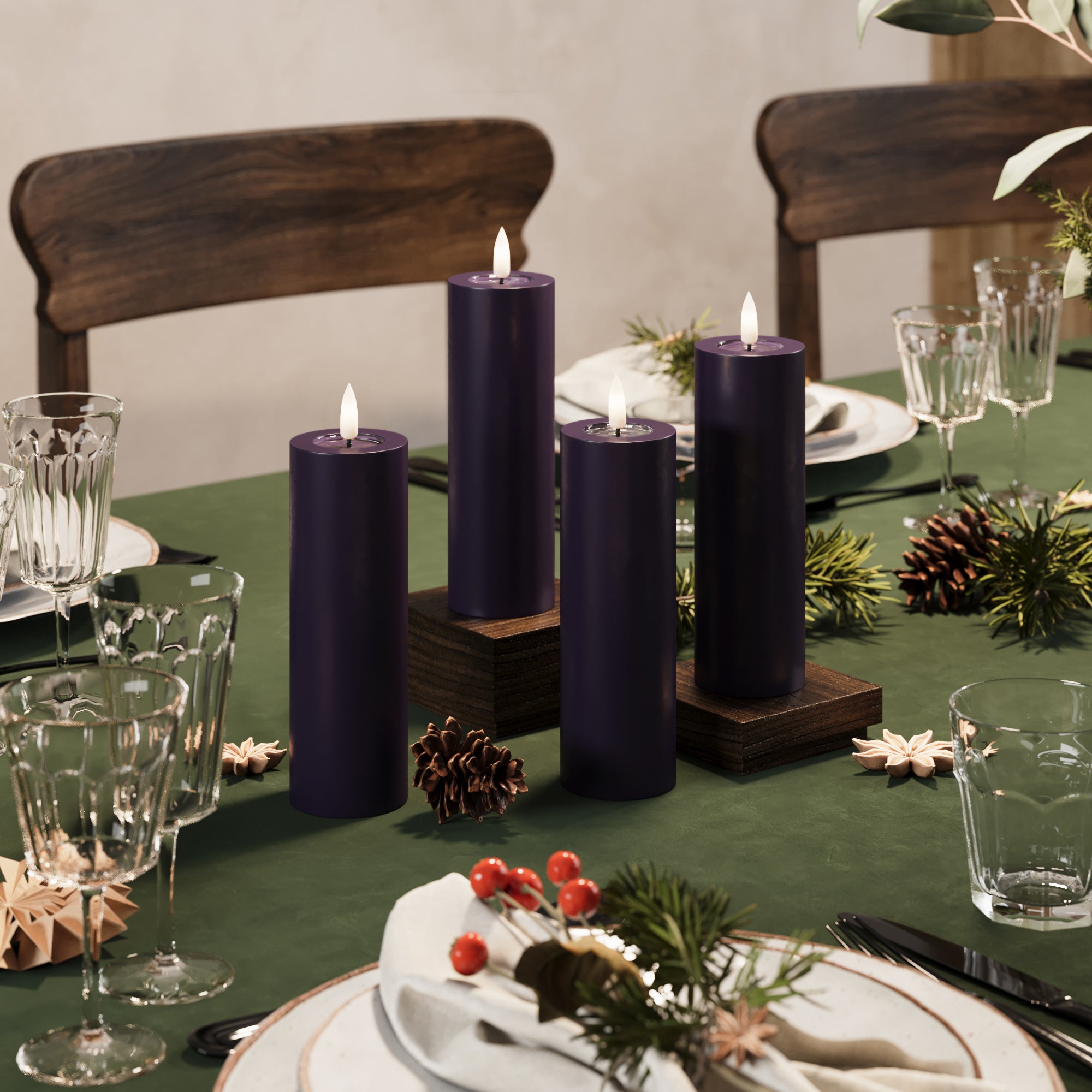 GUIDATO Candela a pilastro Ø 5 x 15 cm Viola scuro - 4 pezzi