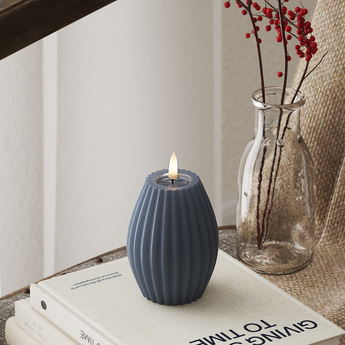Esta articulação elegante Vela canelada em Azul gelo Oferece um efeito de 'chama real' da vida real que é tão realista quanto uma vela real. Com uma altura de 10 cm e um diâmetro de 7,5 cm é uma junta Vela canelada Cuidadosamente feito de velas e resina, equipado com uma chama 3D realista e um revestimento exclusivo de resina no topo. Essa combinação específica não apenas cria um sentimento autêntico, mas também dá ao distinto 'olhar molhado' que imitando as velas derretidas perfeitamente.